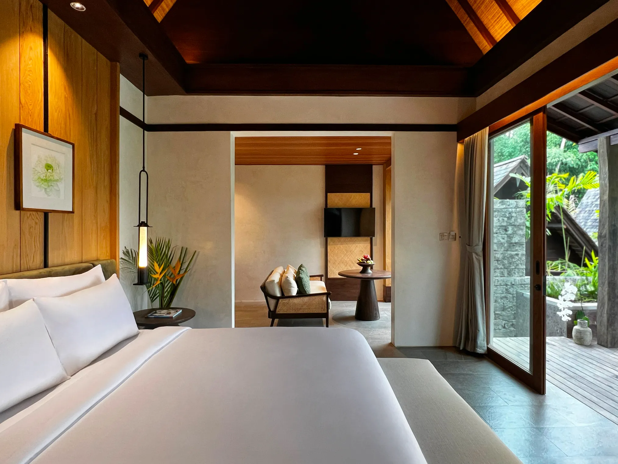 Retreat to this private villa, featuring an outdoor bathtub and a secluded plunge pool—ideal for a serene getaway. Enjoy a spacious bedroom, cozy living room, and a bathroom stocked with complimentary toiletries. Unwind on the terrace, offering breathtaking views of the tropical valley. With air conditioning and a flat-screen TV, this villa provides all the comforts needed for a relaxing stay. Perfect for a peaceful retreat or a romantic escape.